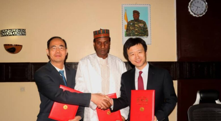 Image d'archive: Vendredi 12 avril 2024, le Premier Ministre de la Transition, M. Ali Mahamane Lamine Zeine (au milieu), et le PDG de la société chinoise CNPC, M. Zhou Zuokun (à gauche).