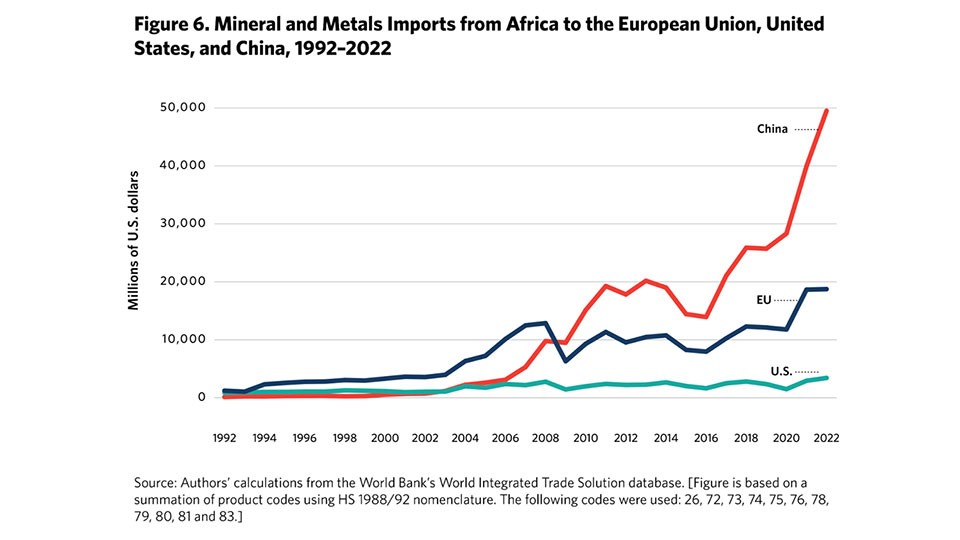 Une grande partie des minerais raffinés provenant de Chine sont originaires d’Afrique. Toutefois, à l’heure actuelle, les États-Unis n’ont qu’un engagement relativement faible avec les pays africains en ce qui concerne l’approvisionnement direct.