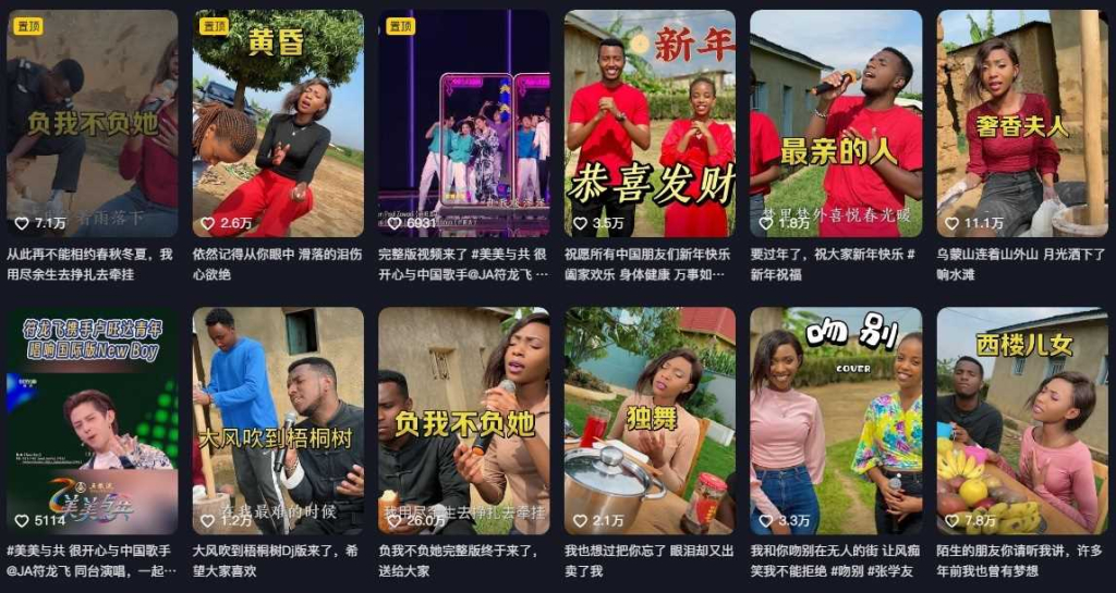 La combinaison de jeunes Africains chantant des chansons populaires chinoises dans un lieu très exotique génère un énorme trafic vidéo en Chine et même sur YouTube, où leurs vidéos atteignent également des millions de vues.