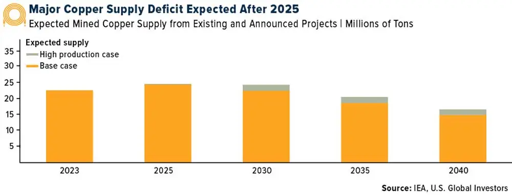 Plus important encore : la demande en cuivre dépasse largement l’offre. Selon les prévisions minières les plus optimistes, un déficit d’approvisionnement significatif se dessinera avant la fin de la décennie. L’Agence internationale de l’énergie estime un manque potentiel de 4,5 millions de tonnes métriques d’ici 2030 dans son scénario le plus volontariste en faveur de l’énergie propre. Même dans son scénario de base, le monde devra disposer de 80 % de cuivre en plus d’ici 2040 pour atteindre les objectifs politiques actuels.