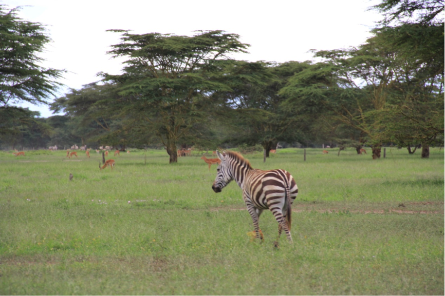 很快,我们发现了身上带着铁丝网陷阱的斑马在不远处挣扎。为了检验伤情,KWS的兽医先用麻醉枪将它麻醉,然后我们再能仔细观察情况——注意,以下情景不是那么欢乐,在非洲safari过无数次的你,恐怕从来没见过这种情况的斑马:
